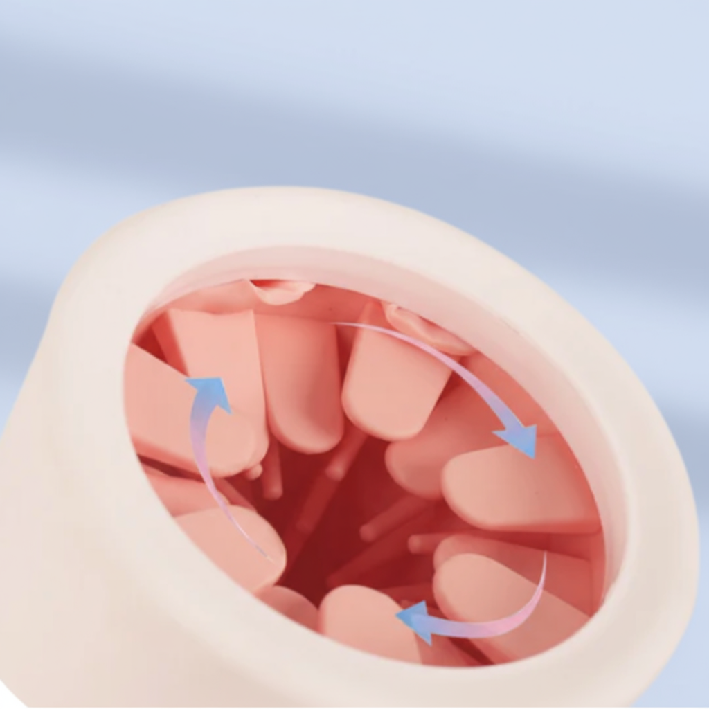 Feito com cerdas de silicone , o copo remove lama, poeira e resíduos do seu animal de estimação sem causar desconforto.