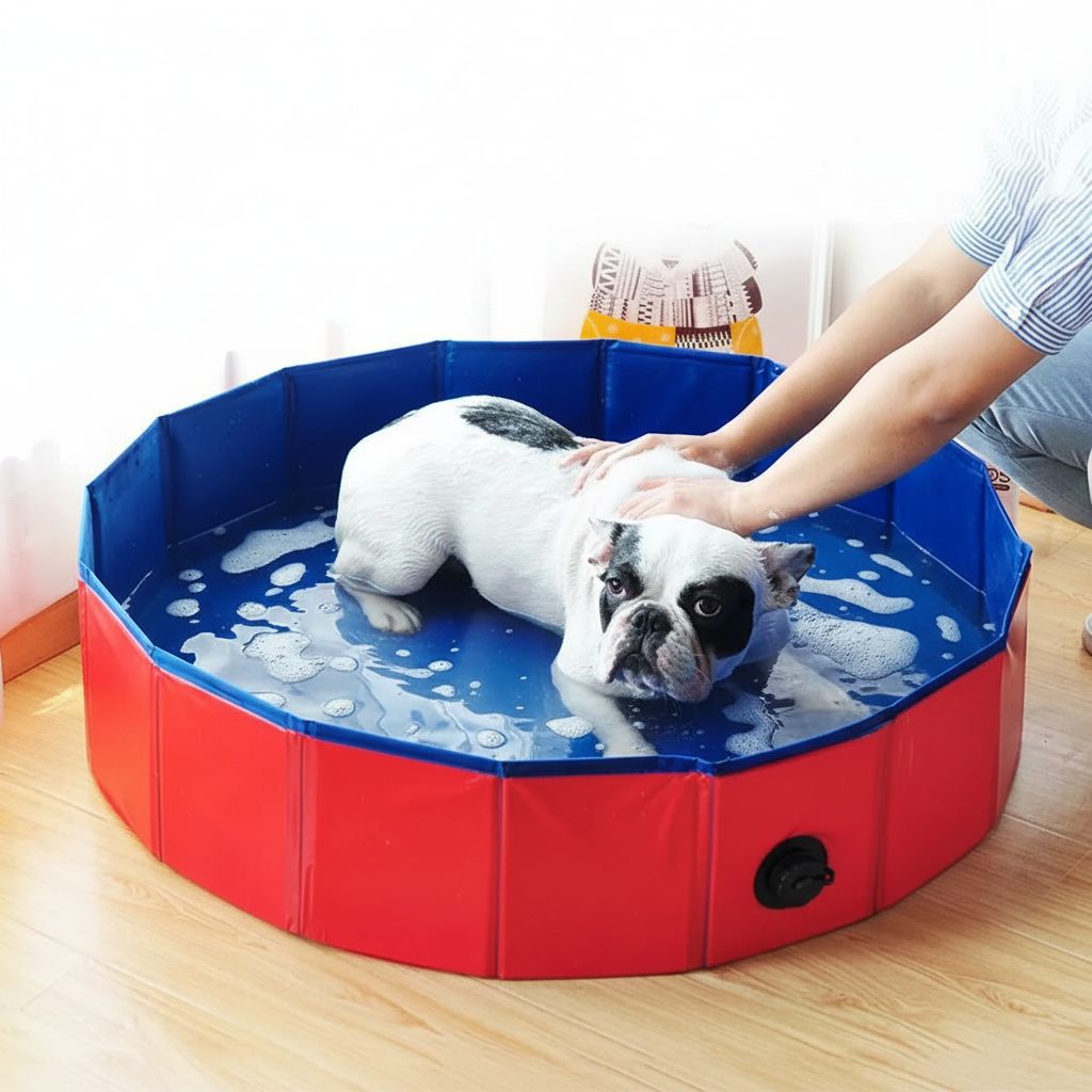 A Piscina Portátil Dobrável para Pets é perfeita para refrescar, brincar e até dar aquele banho rápido no seu amigo de quatro patas, com praticidade e segurança.