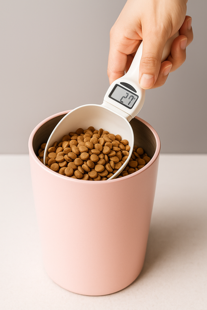 Controlar a alimentação do seu pet nunca foi tão simples. Com a Balança Digital, você tem uma colher medidora inteligente que combina medição precisa com design prático, ajudando a manter a dieta do seu pet saudável, equilibrada e sem complicações.